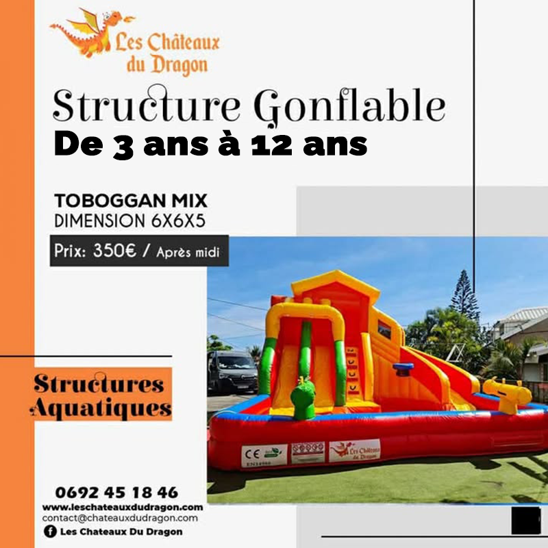 Avec des courbes sinueuses, des passages secrets et des zones de jeu interactives, le Toboggan Mix assure un divertissement continu. Fabriqué avec des matériaux de qualité, ce château gonflable est conçu pour résister à l'énergie débordante des enfants tout en garantissant une expérience sécurisée. Transformez votre événement en une aventure palpitante avec le Toboggan Mix, où chaque glissade est une nouvelle expérience.